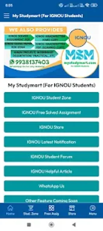 My Studymart: For IGNOU Study uygulaması, IGNOU kurslarına dair tüm ihtiyaçlarınızı karşılamak için tasarlanmış bir platformdur. Ödev hazırlığı, sınavlara çalışma veya ders materyallerine erişim gibi konularda kullanıcılara yardımcı olmayı hedefler. Uygulama, kullanıcıların sınavlar, sonuçlar ve önemli bildirimler hakkında anlık güncellemeler almasını sağlar. Ayrıca, çeşitli dersler için en son çözülmüş ödevlere erişim imkanı sunar.